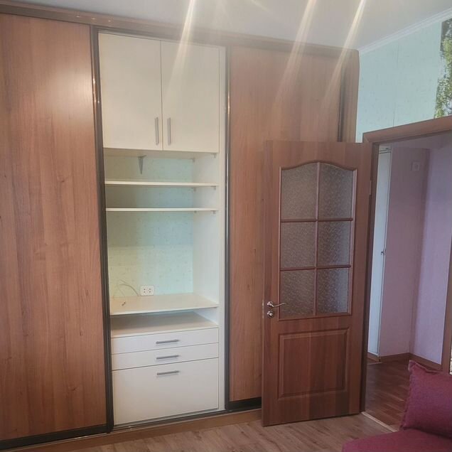 Обновлен кухонный гарнитур, в зоне с плиткой пол с подогревом, натяжные потолки, евро ремонт, пастельные оттенки, двери деревянный массав, вместительные системы хранения вещей, видео глазок.