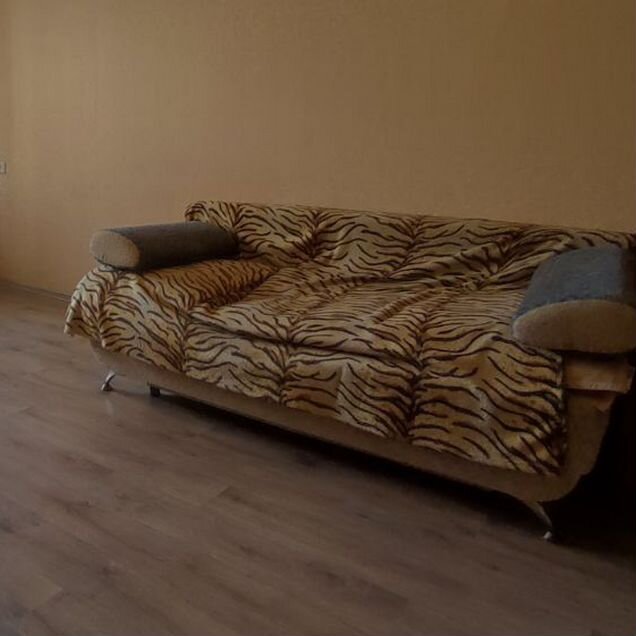 В квартире остается кухонный гарнитур, диван, зеркальный шкаф-купе.