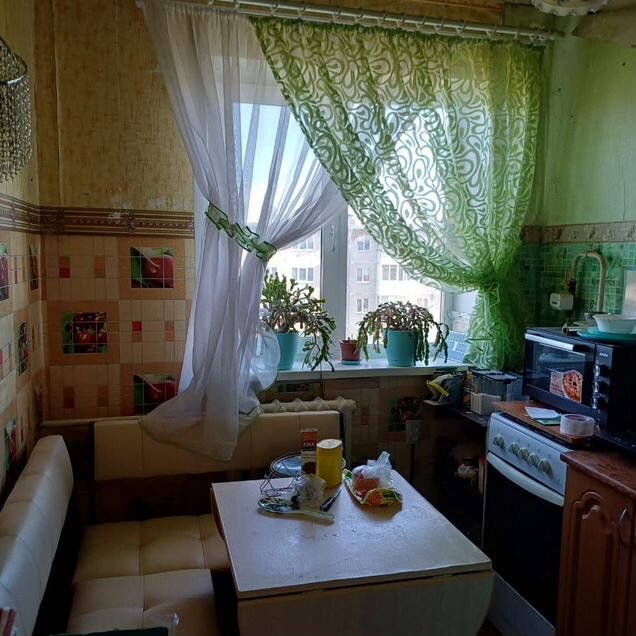 В квартире есть удобная система хранения вещей — гардеробная, которая также служит кладовкой, и большой встроенный шкаф купе, он же вход в гардеробную. Квартира готова к проживанию, на стенах обои, на полу хороший качественный линолеум, натяжной потолок по всей квартире, в санузле плитка, во второй комнате на полу ламинат, но кв требует небольшого косметического ремонта. В квартире остается кухонный гарнитур, стол, табуреты, стиральная машина, встраиваемый шкаф, водонагреватель, обувница, остальное по договоренности.