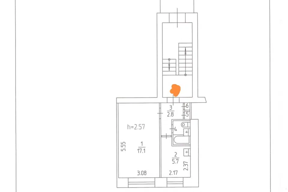 2-комн. кв., 57.7 м², 3/3 этаж