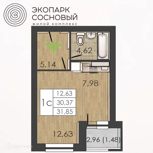 1-комн. кв., 30.2 м², 3/5 этаж