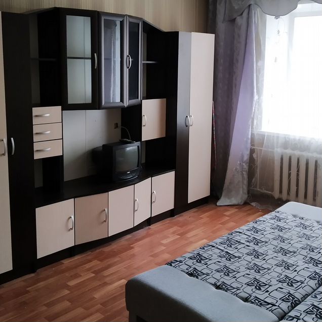 Квартира укомплектована мебелью: диван, большой встроенный шкаф, гримерный столик и тумба под телевизор. Из техники стиральная машина, холодильник, кондиционер. На кухне кухонный гарнитур. Балкон застеклен. Окна выходят на гостиницу УРАЛ.
