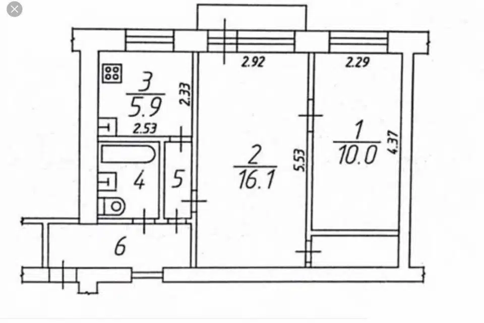 2-комн. кв., 43.5 м², 5/5 этаж