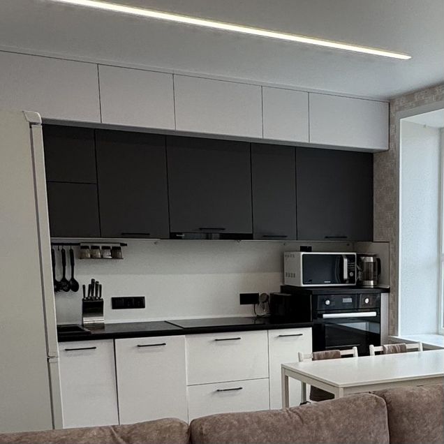 Сделан качественный ремонт - ламинат на полу, хорошие флизелиновые обои, белый матовый натяжной потолок, плитка в ванной, новая ванная.(вся проводка и сантехника заменена).