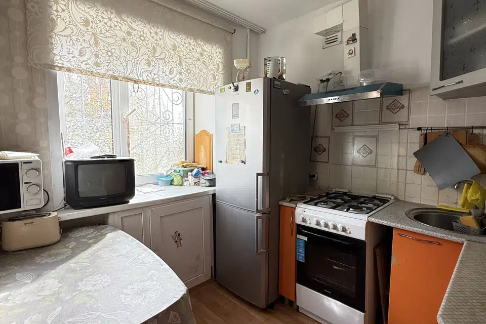 Кухня расположена с видом во двор, комнаты — вид на улицу. В квартире останется кухня, холодильник, стиральная машина, микроволновая печь.