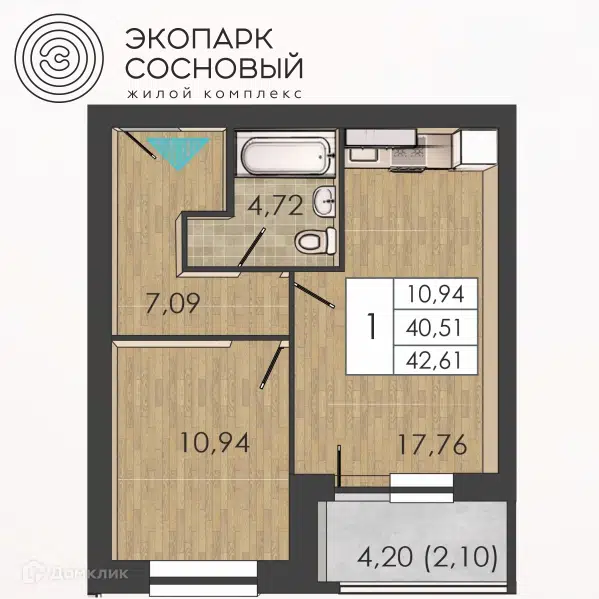 1-комн. кв., 40.4 м², 1/4 этаж