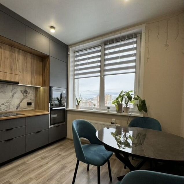 - Качественный кухонный гарнитур с доводчиками Blum.