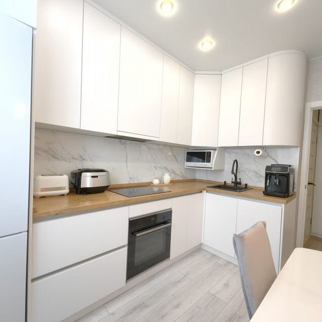 - Качественный кухонный гарнитур с доводчиками Blum.
