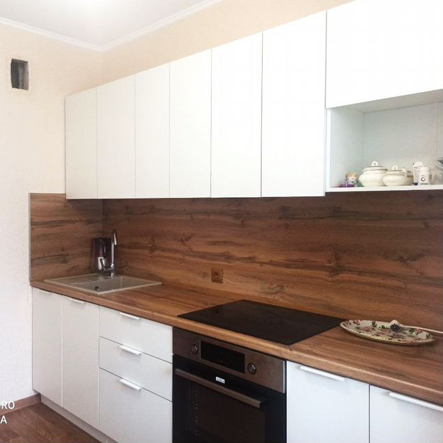 4. Кухня: Стены выровнены и свежеокрашены (моющаяся краска). На полу ламинат, потолок натяжной. Остается: гарнитур, плита, вытяжка, микроволновка и стиральная машина. Стол и стулья по договоренности. Холодильника нет. Окно выходит во двор.