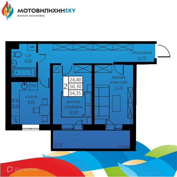 2-комн. кв., 40.3 м², 8/22 этаж