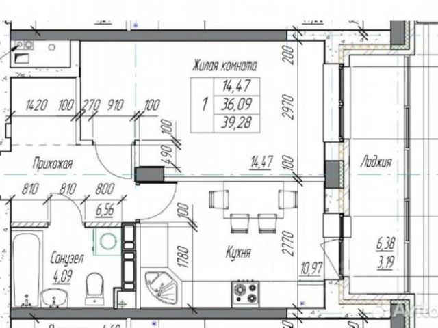 1-комн. кв., 39 м², 8/19 этаж
