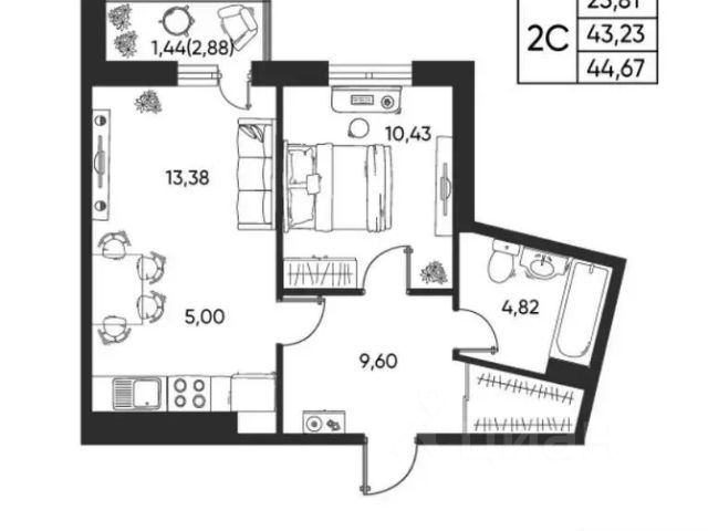 2-комн. кв., 43 м², 4/17 этаж