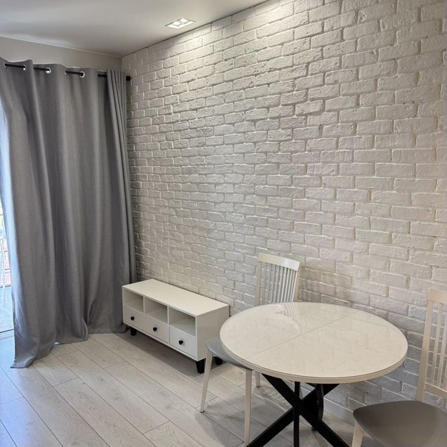 Квартира студия. В непосредственной близости магазины и автобусная остановка. В наличии шкаф-куппе, холодильник, кухня, электрическая варочная панель, стол, тумба под ТВ.
