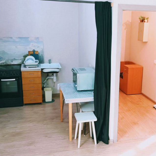 В квартире есть вся необходимая мебель для удобства проживания: с/к плита, холодильник, вместительный шкаф с большим зеркалом, 1-кровать и большой орт. Матрас на фотографии не видно, стол и т. Д.