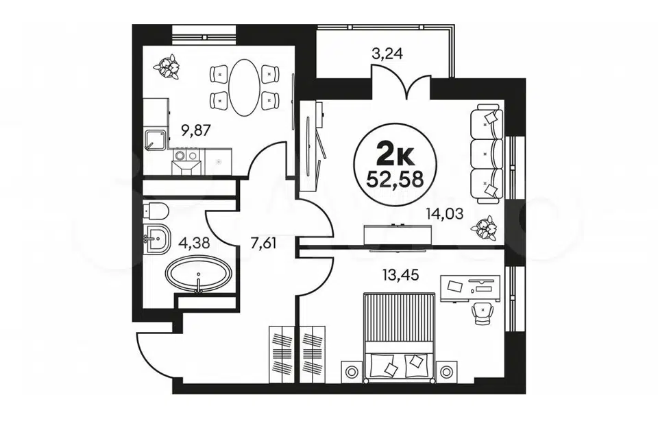 2-комн. кв., 51 м², 9/9 этаж