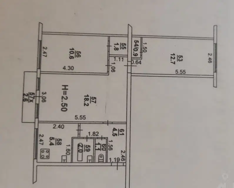3-комн. кв., 54.4 м², 3/5 этаж