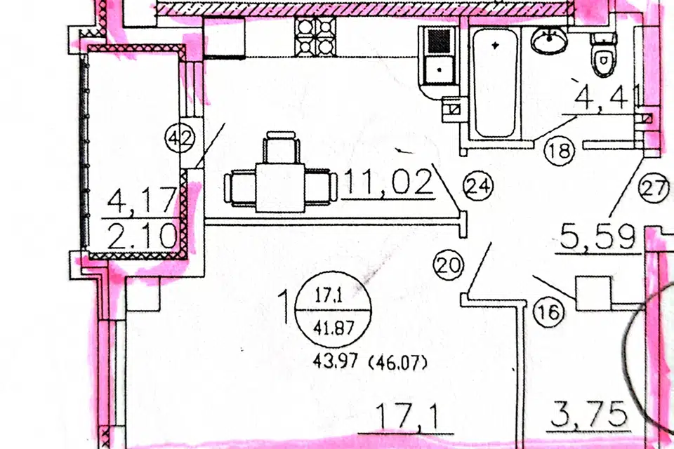 1-комн. кв., 43 м², 4/22 этаж
