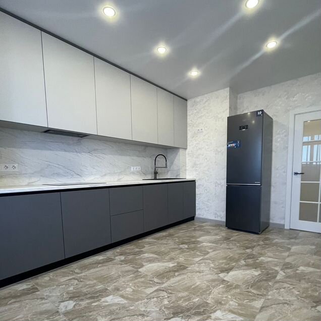Кухня порадует вас продуманной организацией пространства: современный гарнитур, укомплектованный всей необходимой техникой, создаёт идеальные условия для приготовления пищи. Удобная обеденная зона станет местом для семейных трапез. В прихожей установлен вместительный двухкамерный холодильник, а также предусмотрена стиральная машина.