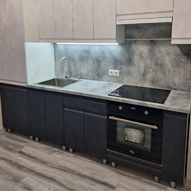 Кухня оборудована функциональным угловым гарнитуром, который максимально эффективно использует пространство. В вашем распоряжении — современная бытовая техника: двухкамерный холодильник, микроволновая печь, удобная обеденная зона и стиральная машина.