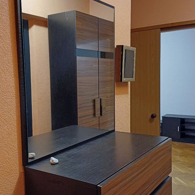 В квартире вся необходимая мебель- раскладные диваны, вместительные шкафы.