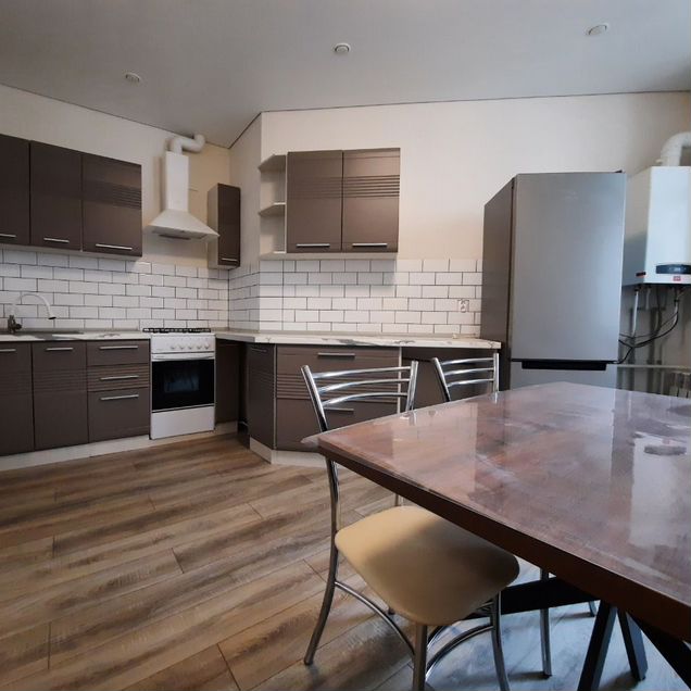 Большая, удобная, просторная кухня-гостиная, раздвигается диван, большое удобное кресло. На кухне имеется посуда, холодильник, микроволновка, духовка, раздвижной стол.