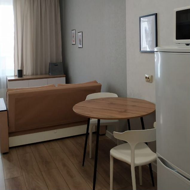 Сдаётся с 6 октября на длительный срок просторная, светлая студия. В квартире имеется всё для комфортного проживания. В кухне установлена современная бытовая техника, включая холодильник и микроволновую печь.