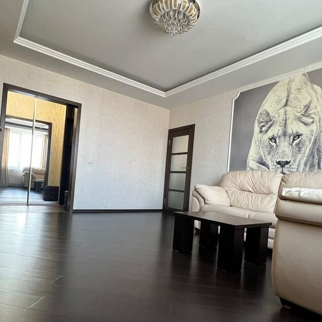 Сдаётся просторная трёхкомнатная квартира в Ростове-на-Дону на проспекте Маршала Жукова, 36/5. Общая площадь квартиры составляет 69 кв. м, жилая площадь — 45 кв. м, кухня — 12 кв. м. Квартира находится на 5 этаже 18-этажного панельного дома, построенного в 2010 году. Высота потолков — 2,8 метра. Из окон открывается вид как на улицу, так и во двор.