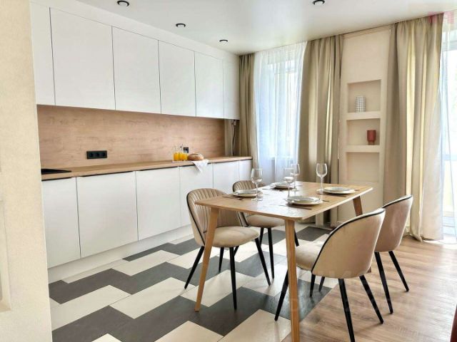 * Просторная кухня-гостиная , где вы сможете проводить время с семьей и друзьями, устраивая уютные вечера и праздники .