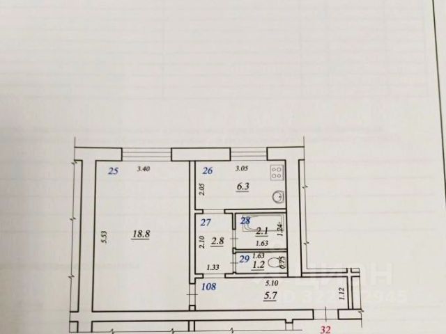 Квартира на 2-м этаже/5 этажного дома 31/18/5,5 м2, горячая вода (без колонки). Квартира угловая, что делает возможным зонирование жилой комнаты.