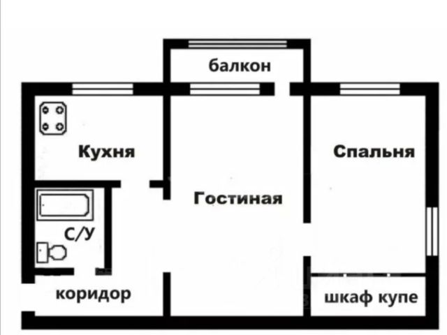 Продается 1-комнатная квартира общей площадью 32 кв. М.
