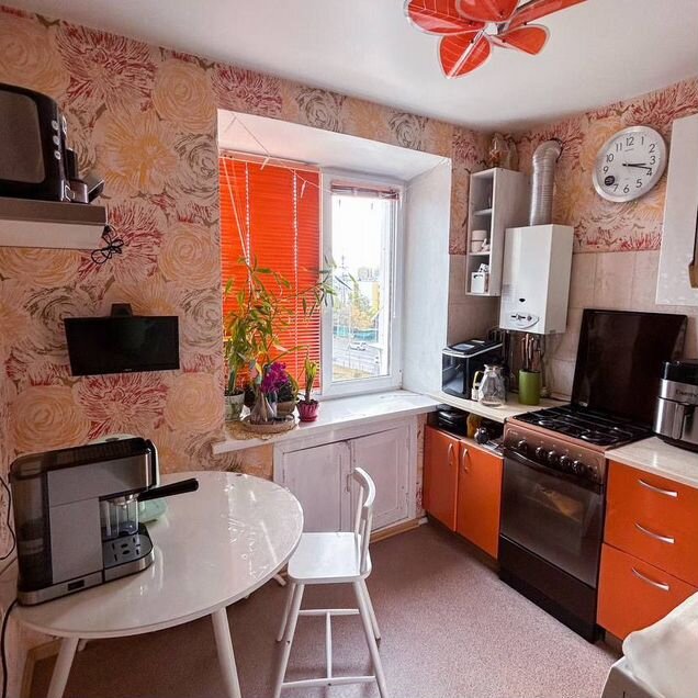 32,3 м², 5-й этаж кирпичного дома 1976 года. Потолки выше обычного (около 2,8 м), поэтому квартира ощущается просторной и лёгкой. А за то, что этаж последний — можно не переживать: крыша прошла капитальный ремонт совсем недавно.