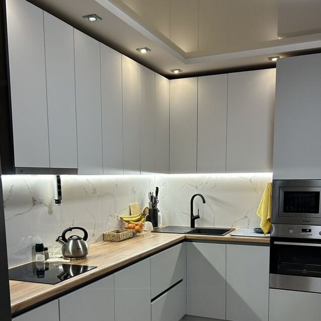 В подарок останется кухонный гарнитур с техникой, встроенные шкафы купе, большой сейф, светильники с кристаллами Сваровски.