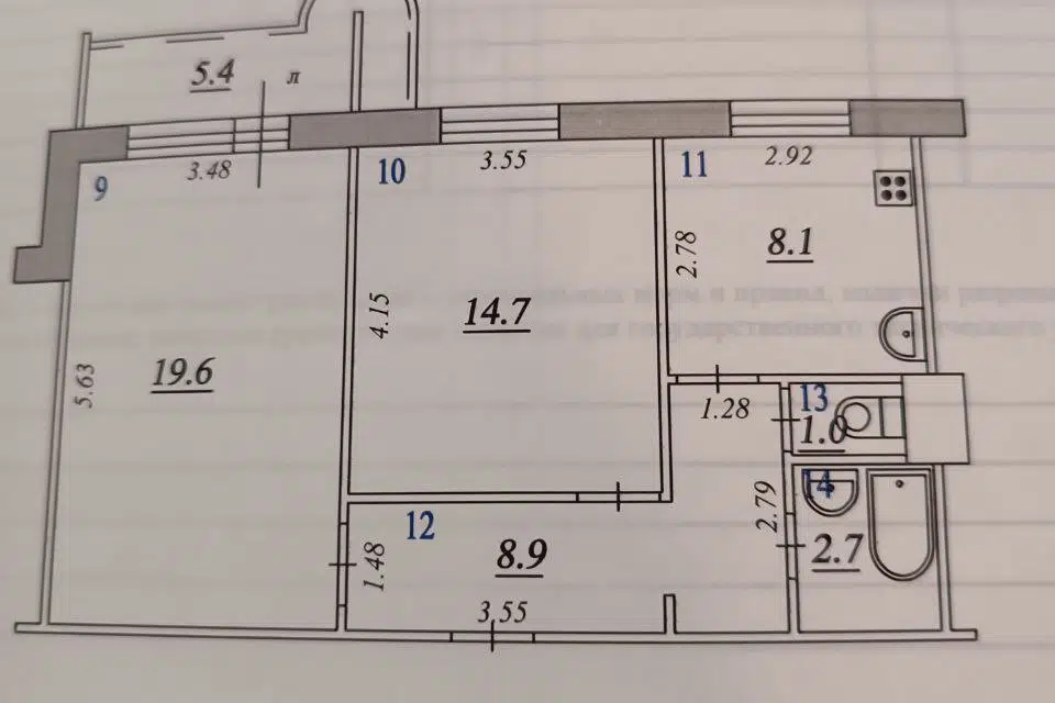3-комн. кв., 58.1 м², 5/5 этаж