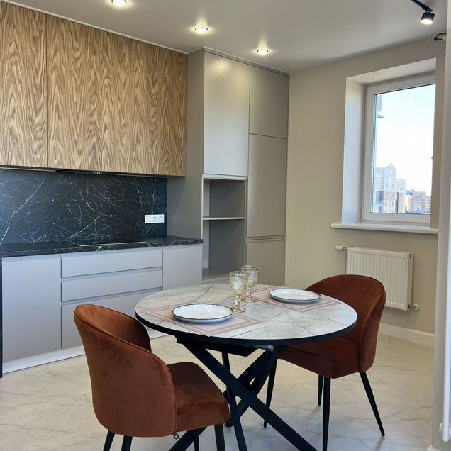 Стильная квартира с дизайнерским ремонтом. Современный ремонт, выполнен из качественных материалов, все продумано для комфортного проживания, полы-ламинат, керамогранит, в санузле новая сантехника. Потолки натяжные. Кухня со встроенной техникой.