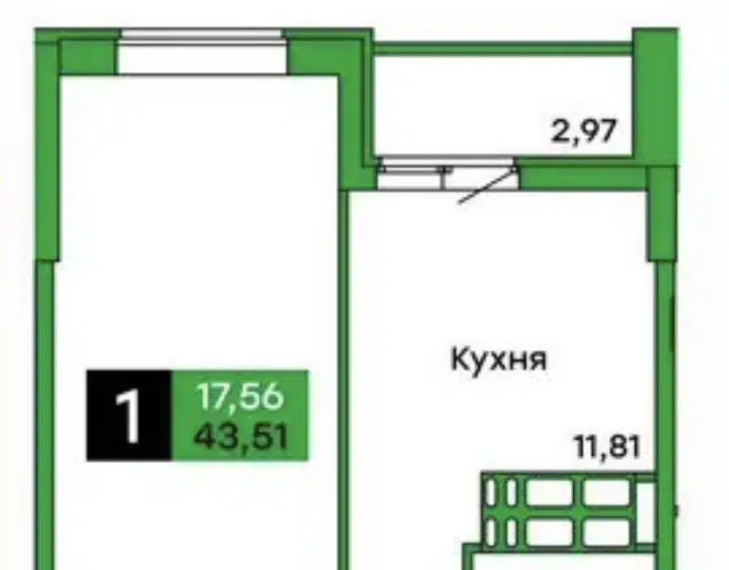 1-комн. кв., 43.51 м², 15/27 этаж