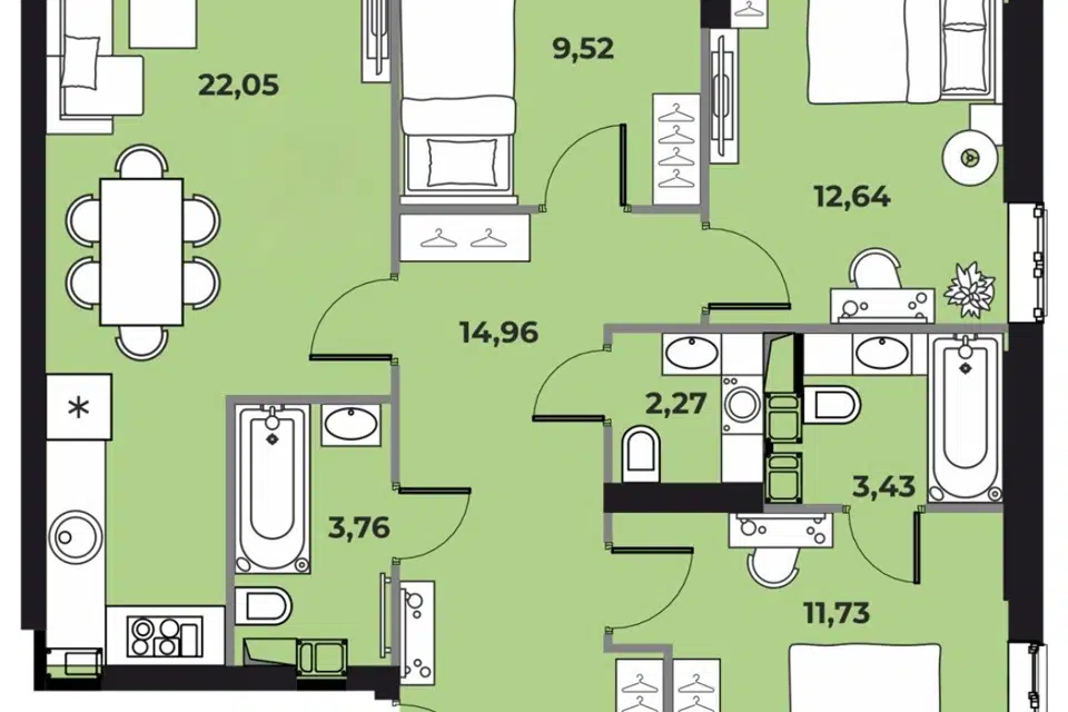 3-комн. кв., 95.7 м², 21/25 этаж
