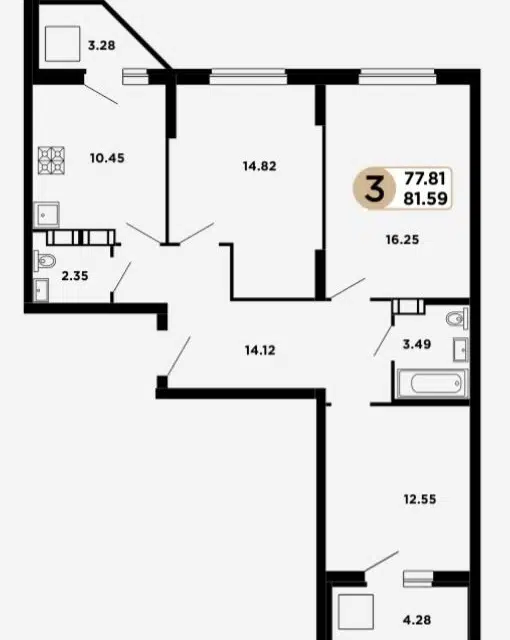 3-комн. кв., 75.8 м², 12/25 этаж