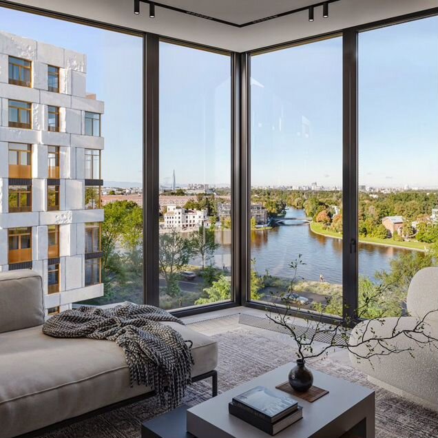 NEVA HAUS выгодно расположен в тихой зоне, вдали от Петровского проспекта, с панорамными видами на Малую Невку и городские архитектурные достопримечательности. Просторные приватные зеленые зоны комплекса обеспечат приятное уединение. Территория комплекса благоустроена зелёными насаждениями, современными детскими и спортивными площадками, а также яхт-клубом, что создает особенную островную среду для жизни. Близость парков Крестовского острова и сформировавшаяся социальная инфраструктура обеспечивают высокое качество жизни.