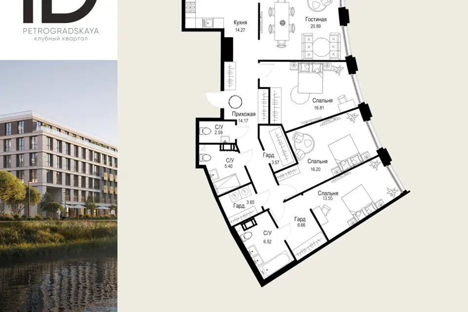4-комн. кв., от 161.24 м², 3-5 этажи
