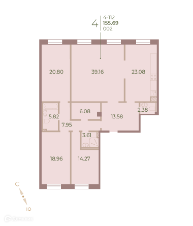 4-комн. кв., 155.5 м², 1/7 этаж