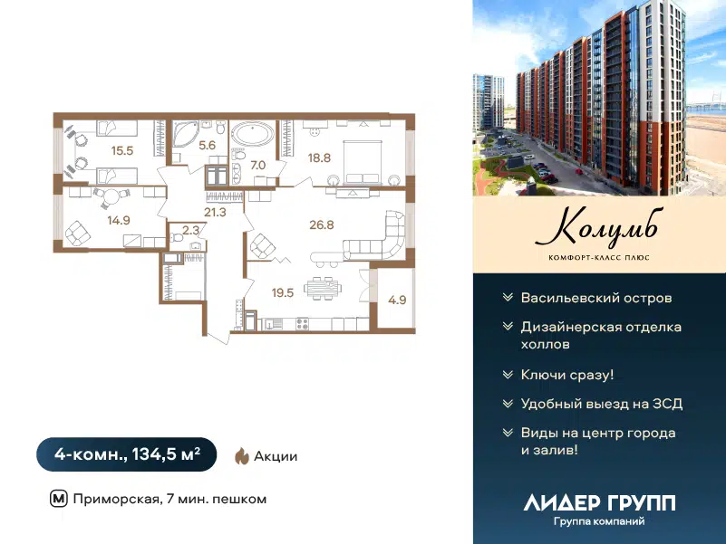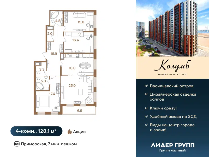 Купить четырехкомнатную квартиру в Санкт-Петербурге - Василеостровский район