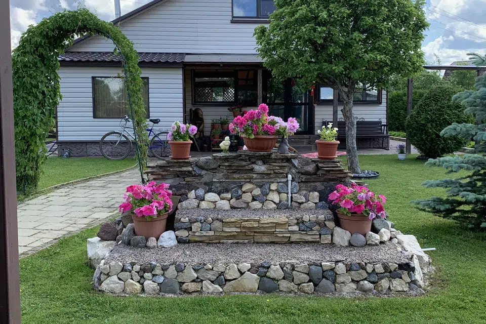 Ухоженная территория, простирающаяся на 11 соток (фактически 15 соток), зелёный газон, покрывающий большую часть площади, создает атмосферу спокойствия и умиротворения. Чёткие линии дорожек и продуманное расположение насаждений подчеркивают красоту и функциональность пространства.