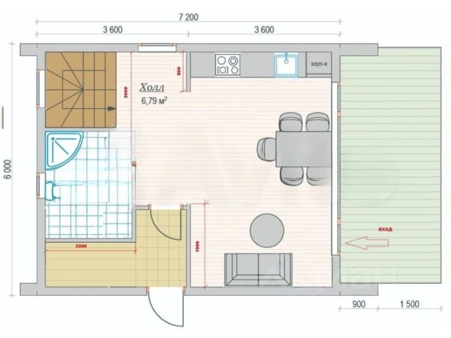 - Просторная кухня-гостиная