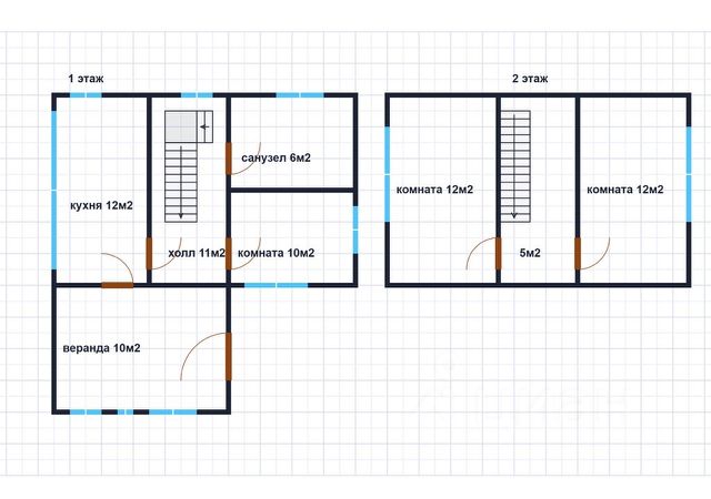 Дом, 2 спальни, 64.2 м², 2 этажа
