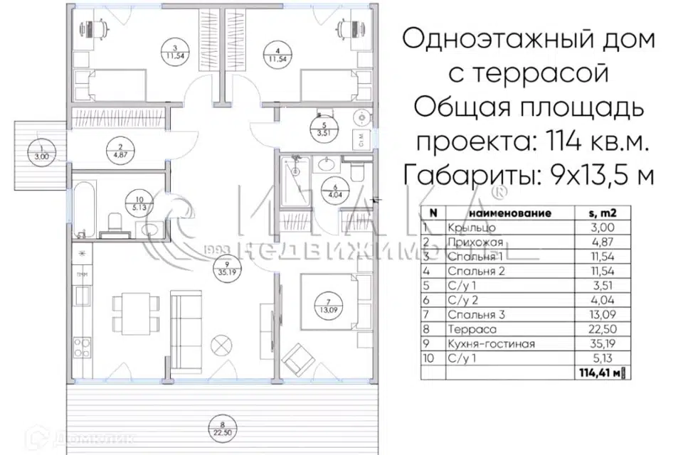 Дом, 3 спальни, 114.41 м², 1/1 этаж