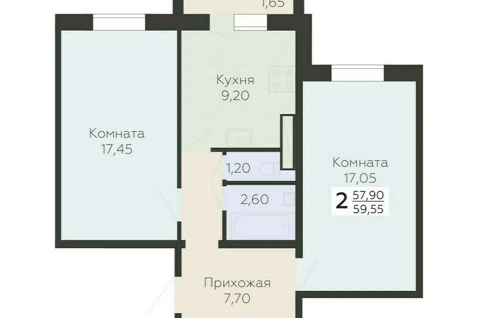 2-комн. кв., 59.55 м², 7/18 этаж