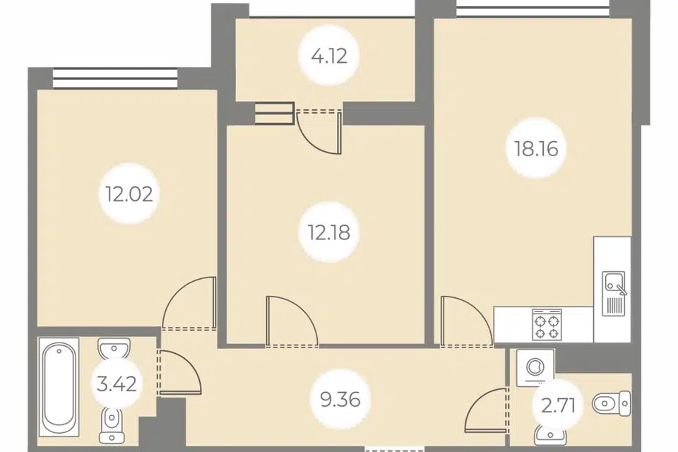 2-комн. кв., 61.4 м², 10/12 этаж