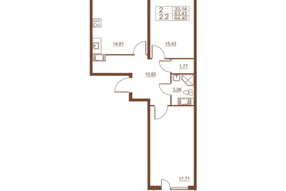 2-комн. кв., 59.3 м², 5/15 этаж