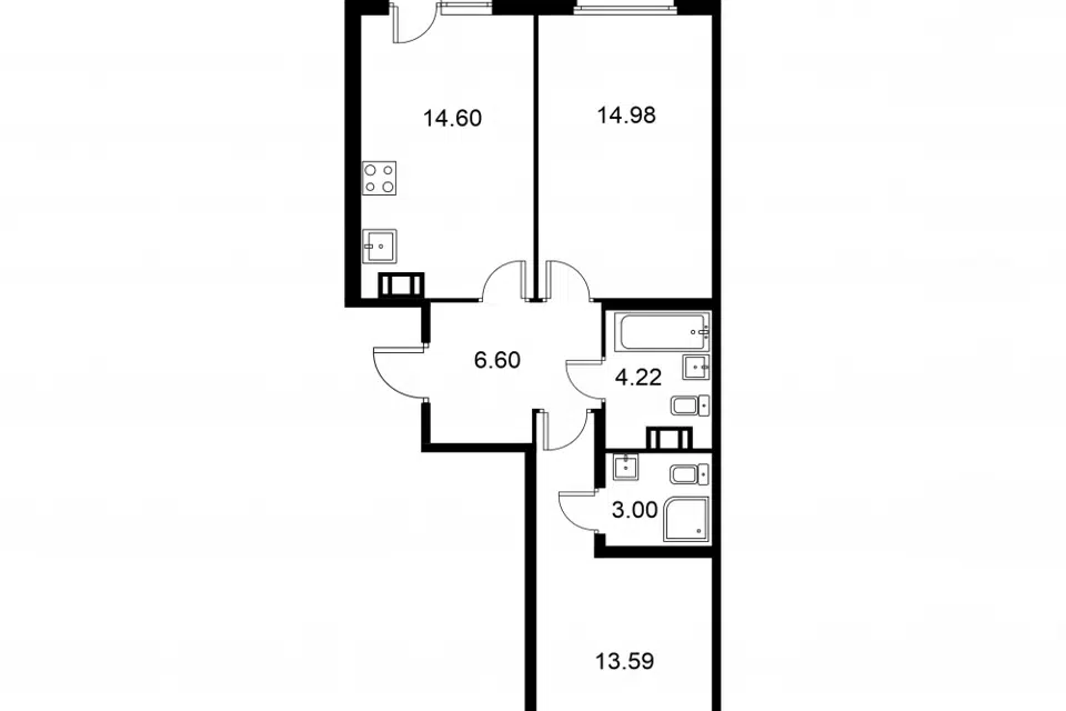 2-комн. кв., 58.49 м², 3/9 этаж