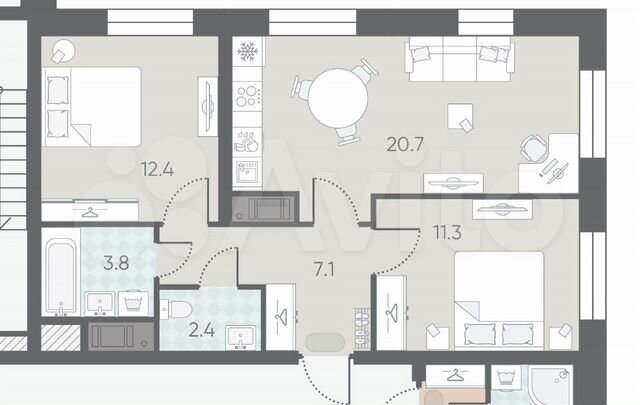 2-комн. кв., 57.7 м², 4/12 этаж